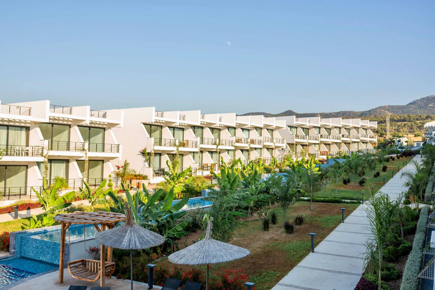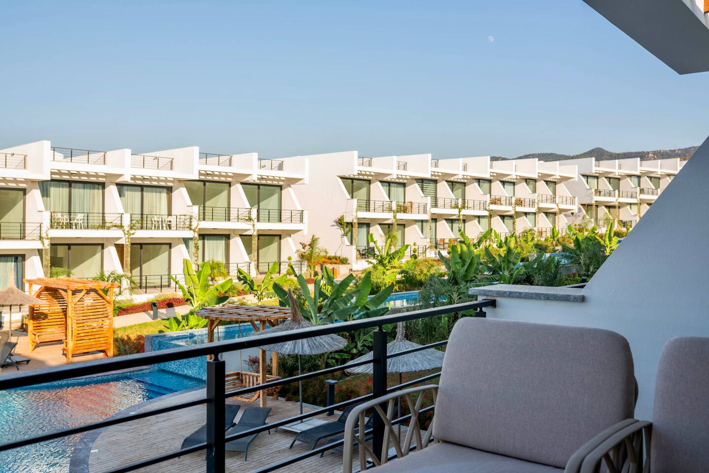 Unsere Unterkunft verbindet Luxus mit Natur: Genießen Sie den Blick auf Meer und Berge, ein modernes Studio für bis zu 2 Personen, eine Terrasse, Smart TV mit Netflix, eine voll ausgestattete Küche und einen Pool im tropischen Garten. Nur 2 Min. zum Sandstrand und einem Beachclub, mit Café/Restaurant vor Ort und Zugang zur Ferienanlage mit Gym. Perfekt für Erholung – ein Supermarkt ist ebenfalls in der Nähe.