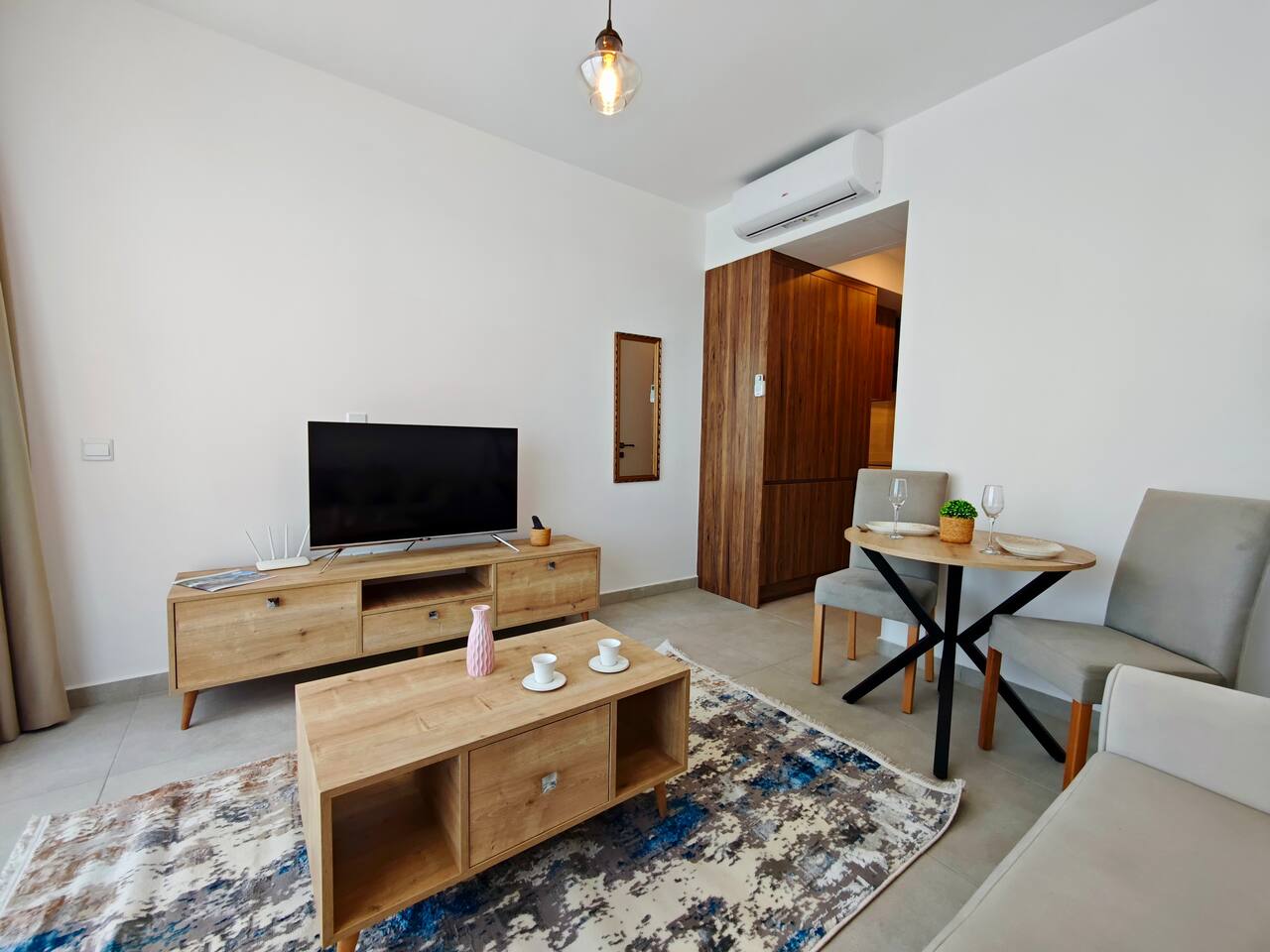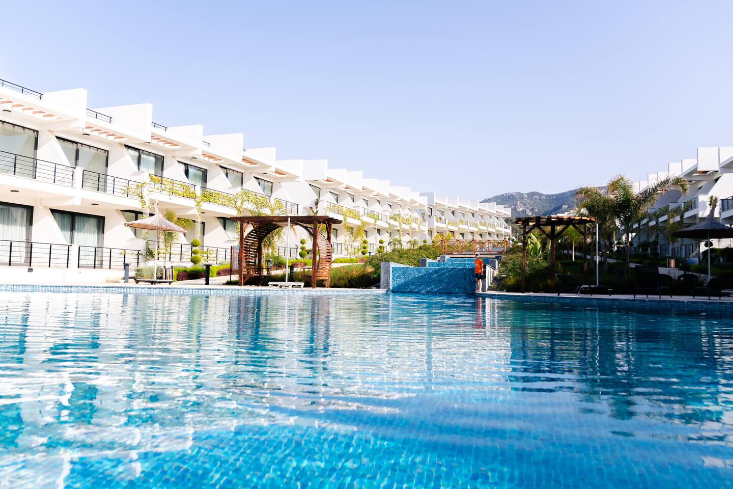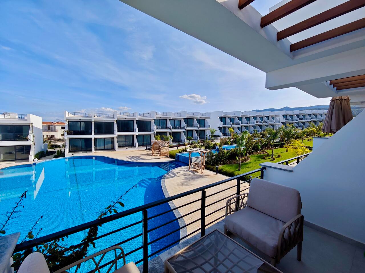 Hallo! Mein Name ist Ferhat, und ich freue mich, dich in meinem kleinen Paradies in Nordzypern willkommen zu heißen. Mein Ziel ist es, deinen Aufenthalt zu etwas ganz Besonderem zu machen – mit Komfort, Stil und unvergesslichen Momenten. Hier erwartet dich ein moderner Rückzugsort, der dir das Gefühl gibt, nicht in einer Ferienwohnung, sondern in deinem zweiten Zuhause zu sein. Highlights unserer Unterkunft: • Terrasse mit Meerblick: Starte deinen Tag mit einem Kaffee und einem spektakulären Blick auf das türkisfarbene Meer und die Berge. Abends kannst du hier den Sonnenuntergang genießen – perfekt für ein Glas Wein. • Wohnbereich: Das moderne Studio bietet Platz für bis zu 2 Personen, ein komfortables Doppelbett und einen Smart-TV mit Netflix für entspannte Abende. • Küche: Die voll ausgestattete Küche ist bereit für deine kulinarischen Experimente. Besonders hervorzuheben: Du erhältst sauberes, gefiltertes Trinkwasser direkt aus dem Wasserhahn – ganz ohne Plastikflaschen. • Salzwasserpool: Tauche ein in unseren endlosen Salzwasserpool, der sich durch die üppige Gartenlandschaft zieht. Bequeme Sonnenliegen laden zum Entspannen ein. • Fitness: Bleib aktiv im Fitnessstudio mit Blick auf den Pool, nur 5 Minuten entfernt. Nach dem Training bietet ein Sprung in den Pool die perfekte Erfrischung. • Strandnähe: Der Sandstrand und ein exklusiver Beachclub sind nur eine kurze Autofahrt entfernt – ideal, um die Wellen zu genießen oder entspannt die Sonne zu tanken. Unser Ziel ist es, dir ein Rundum-sorglos-Erlebnis zu bieten, das Komfort, Luxus und Natur miteinander verbindet. Ob du dich entspannen oder die Schönheit Nordzyperns entdecken möchtest – hier findest du alles, was du dafür brauchst. Ich freue mich, dich bald als meinen geschätzten Gast begrüßen zu dürfen!