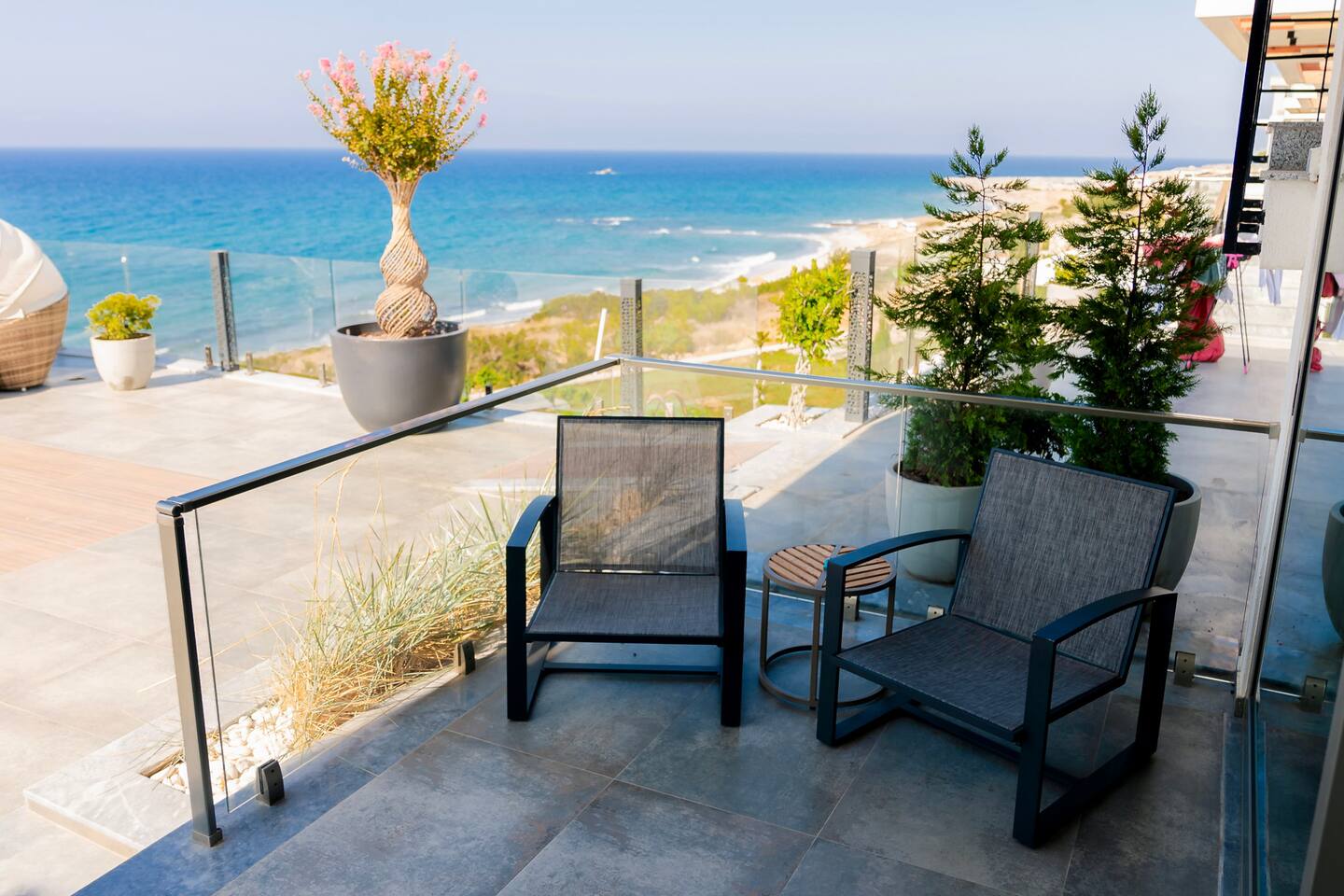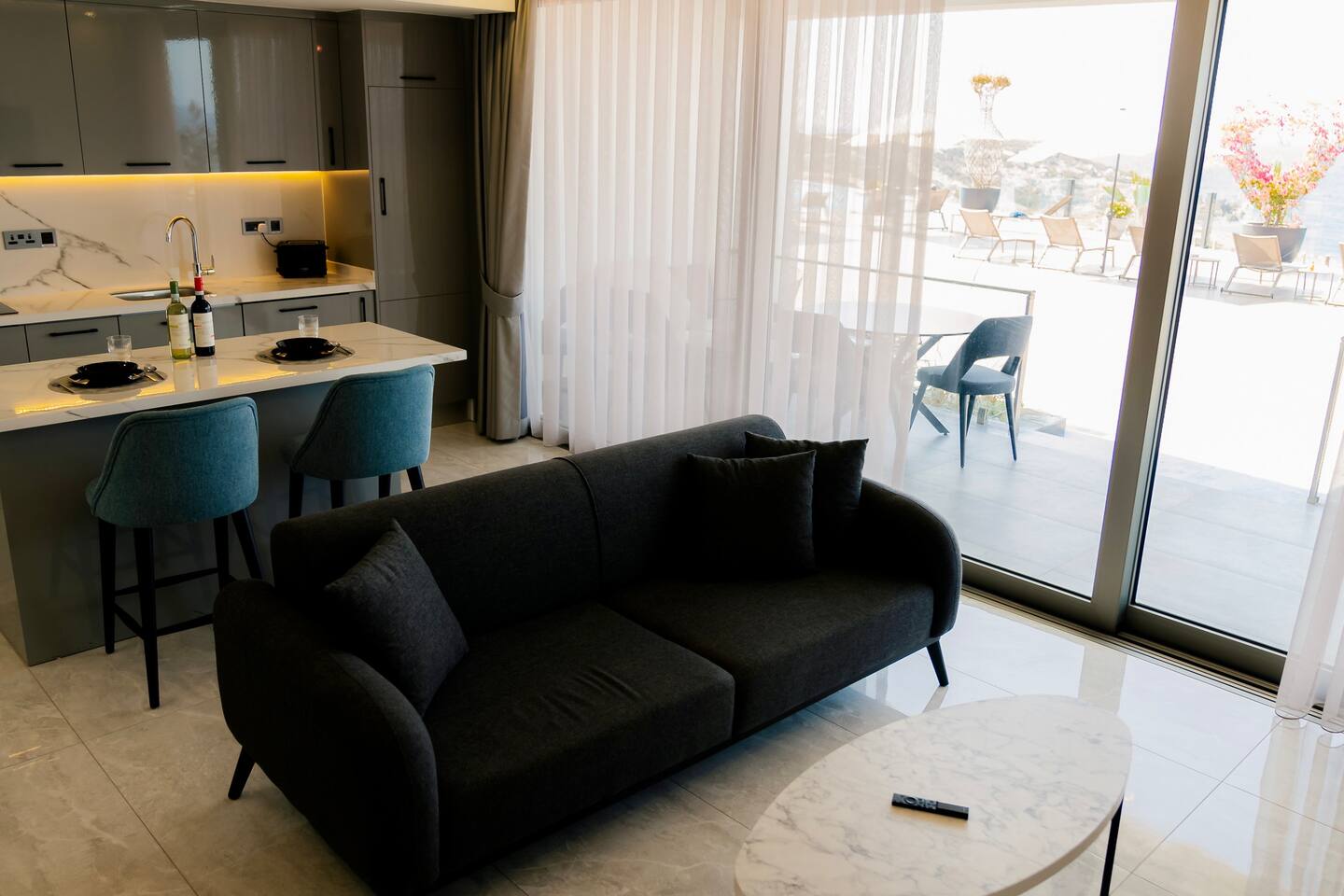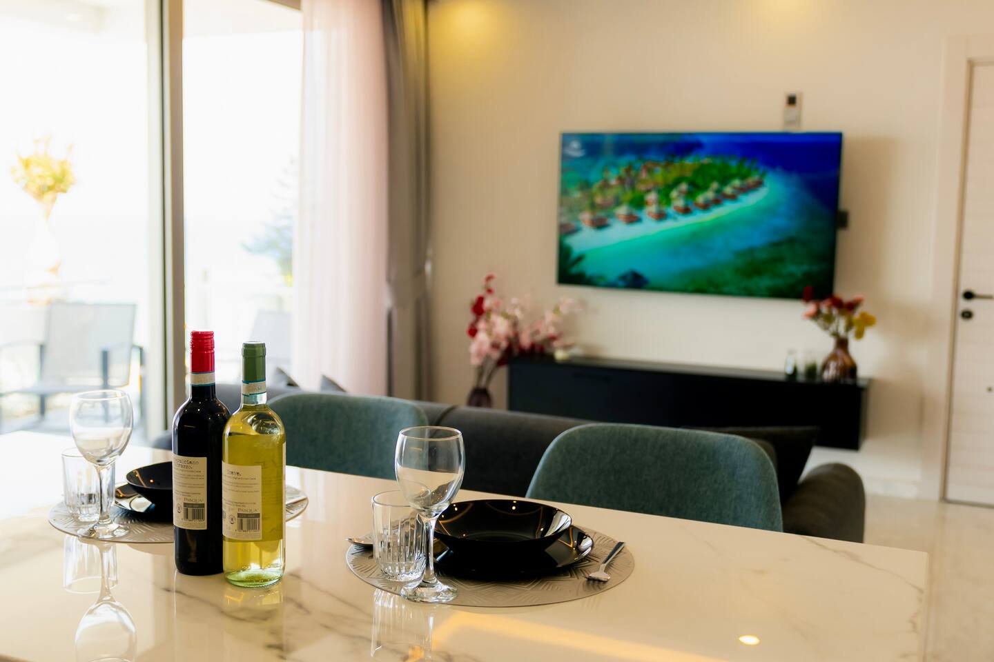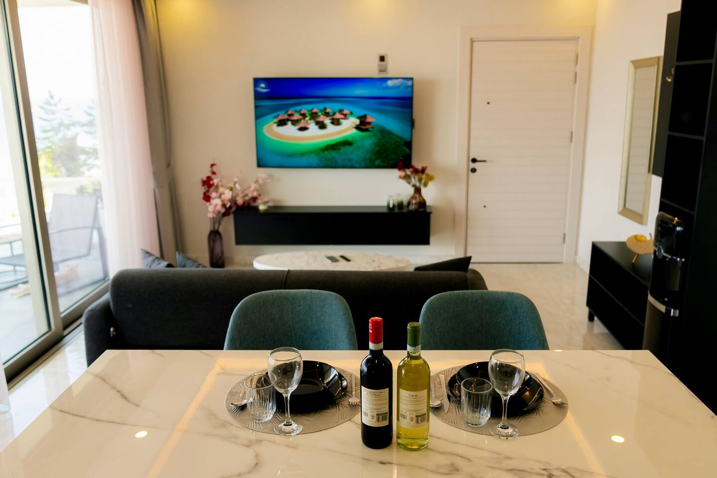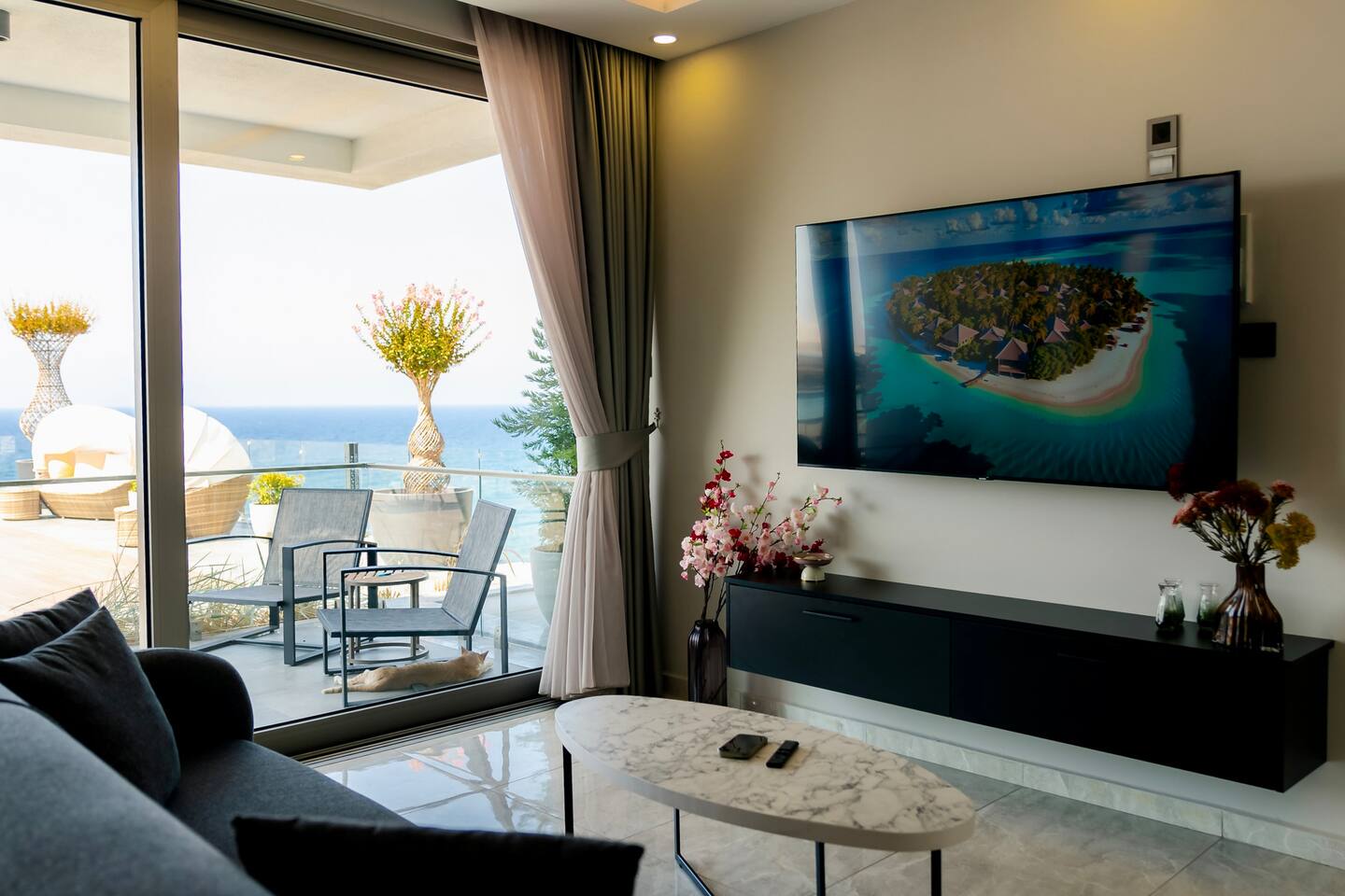 Willkommen in unserer gemütlichen Wohnung in exklusiver Lage direkt am Meer! Sie vereint höchsten Komfort und elegantes Design. Genieße atemberaubende Meerblicke von der Terrasse, vom Wohnzimmer und dem Infinity Pool. Diese stilvolle Oase bietet dir absolute Ruhe und Erholung. Ideal für Golfer: Der internationale Golfclub "Korineum" ist nur 5 Minuten entfernt. Ein unberührter Strand liegt direkt vor der Tür und verspricht unvergessliche Naturerlebnisse.