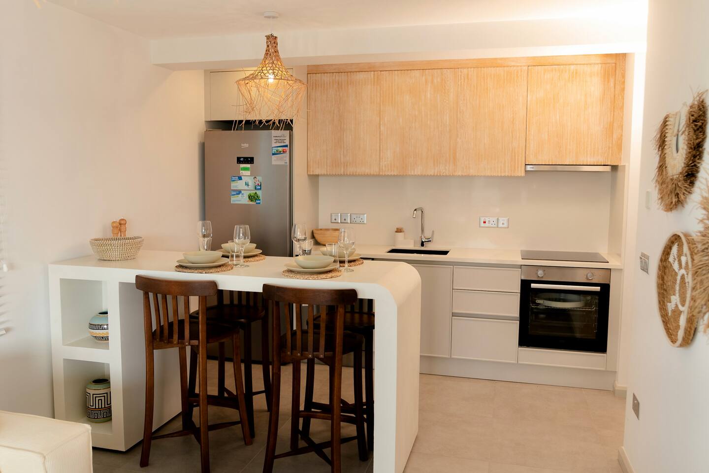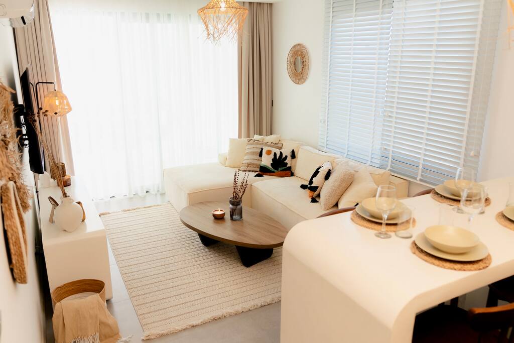 Hallo und herzlich willkommen! 🌟 Ich freue mich sehr, dass du meine gemütliche Wohnung entdeckt hast – vielleicht ist dies schon der erste Schritt zu deiner nächsten kleinen Auszeit. Mein Ziel: dass du ankommst, durchatmest und dich sofort wohlfühlst. Nach über zehn Jahren eigener Airbnb-Erfahrungen war mir klar, wie ein Ort aussehen muss, an dem man wirklich abschalten kann. Genau so ist diese Wohnung entstanden. 🏡 Die Wohnung – Stilvoll, gemütlich und sofort zum Wohlfühlen Hier bekommst du eine Mischung aus Komfort und praktischer Ausstattung, damit du dich ab dem ersten Moment wie zu Hause fühlst: ✔️ Zwei Schlafzimmer mit bequemem Doppelbett, frischer Bettwäsche und kuscheligen Kissen für tiefen, erholsamen Schlaf ✔️ Helles Wohnzimmer mit Flachbildfernseher & Streaming-Zugang – logge dich einfach in dein Konto ein ✔️ Voll ausgestattete Küche mit allem, was du brauchst: • Kochutensilien, Kaffeemaschine, Toaster, Grundgewürze ✔️ Schnelles WLAN – perfekt für Homeoffice oder gemütliche Filmabende ✔️ Viel Stauraum & Kleiderbügel ✔️ Basisbedarf wie Waschmittel, Spülmaschinentabs, Toilettenpapier & Seife ist bereits da Alles vorbereitet – du musst nur ankommen. 🛁 Terrasse & Jacuzzi – dein privater Entspannungsplatz Die große, überdachte Terrasse lädt dazu ein, den Tag entspannt zu starten oder abends bei einem Glas Wein ausklingen zu lassen. Ein besonderes Highlight ist der Jacuzzi – aktuell nur mit Kaltwasser, aber ideal für eine erfrischende Auszeit, um den Blick schweifen zu lassen oder unter dem Sternenhimmel zu entspannen. 🏖️ Die Anlage – Ein Ort zum Abschalten Die Anlage bietet dir ein Rundum-Wohlfühlpaket, perfekt abgestimmt auf Urlaub, Wellness und Genuss: 💪 Moderner Fitnessraum 🏊♀️ Beheiztes Hallenbad 🧖♀️ Hamam & großer Poolbereich mit Sonnenliegen 🌊 Eigene kleine Bucht mit Sandstrand & Outdoor-Kino – unvergessliche Filmabende garantiert 💆♂️ Beauty-Salon, Friseur & Massagen buchbar 🍽 Restaurant mit lokaler und internationaler Küche Alles direkt vor der Tür – du brauchst das Resort kaum zu verlassen. 💙 Warum du dich hier richtig wohlfühlen wirst Ich habe die Wohnung mit dem Anspruch gestaltet, dass du dich jederzeit fallen lassen kannst: ✨ Liebevoll eingerichtete Räume ✨ Perfekte Sauberkeit vor jeder Ankunft ✨ Viele kleine Details, die dir das Leben leichter machen Ich bin vor Ort und jederzeit erreichbar, falls du Fragen hast oder Unterstützung brauchst. Dein Wohlbefinden steht bei mir an erster Stelle. 📋 Hausregeln • Familienfreundlich, ideal für Paare & Alleinreisende • Keine Haustiere • Rauchen nur auf der Terrasse • Keine Partys – für eine entspannte Atmosphäre für alle Gäste 📅 Zusammenfassung – Dein Rückzugsort für eine perfekte Auszeit Diese Wohnung ist mehr als nur eine Unterkunft – sie ist dein privater Ort zum Auftanken, mit Jacuzzi, Terrasse, moderner Ausstattung und einer Anlage, die kaum Wünsche offenlässt. Buche jetzt deine wohlverdiente Auszeit auf Zypern – ich freue mich auf dich! 🌞