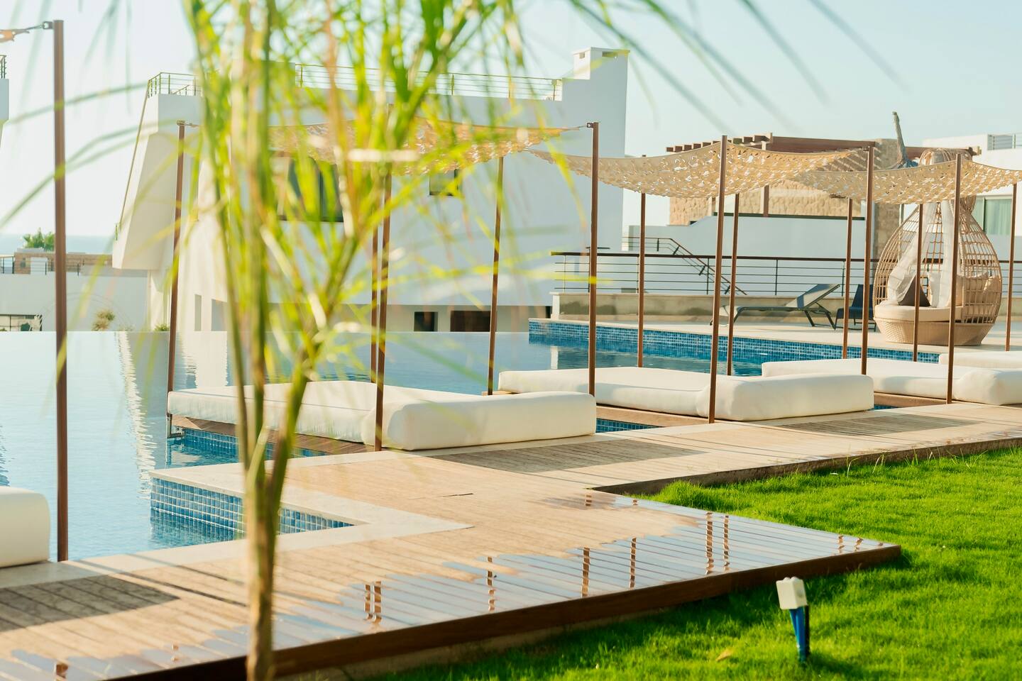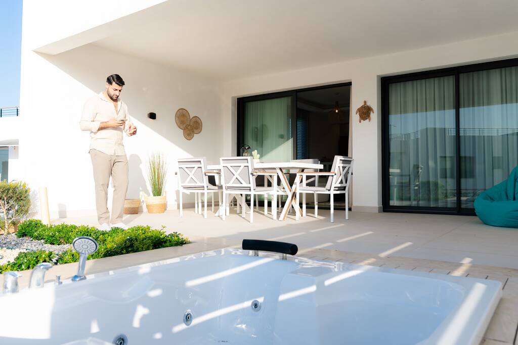 Als Gast hast du vollen Zugang zu allen Bereichen der Wohnung – inklusive der großzügigen Terrasse mit deinem privaten Jacuzzi, den du direkt aus dem Wohnbereich betreten kannst. Darüber hinaus stehen dir zahlreiche Einrichtungen in der Anlage „Mykonos Homes“ sowie der direkt angrenzenden „Maldives Homes“ zur Verfügung. Mit deiner persönlichen Zugangskarte kannst du beide Resorts flexibel nutzen und dein Urlaubserlebnis voll ausschöpfen. Einrichtungen in „Mykonos Homes“: • Großer Gemeinschaftspool mit Sonnenliegen • Pool Bar (aktuell noch nicht in Betrieb) • Modernes Fitnessstudio Einrichtungen in „Maldives Homes“: • Mehrere Gemeinschaftspools • Beheiztes Hallenbad • Modernes Fitnessstudio • Café & Pool Bar • Outdoor-Kino (saisonal) • Spa/Thai, Sauna & Hamam • Markt & Privatstrand • Tennisplatz & Minigolf • Erste-Hilfe-Raum • Kinderspielplatz • Restaurant Genieße die Freiheit, dich zwischen zwei Anlagen zu bewegen und das umfassende Freizeit- und Wellnessangebot nach Belieben zu nutzen – ganz so, wie es für deinen perfekten Aufenthalt passt.