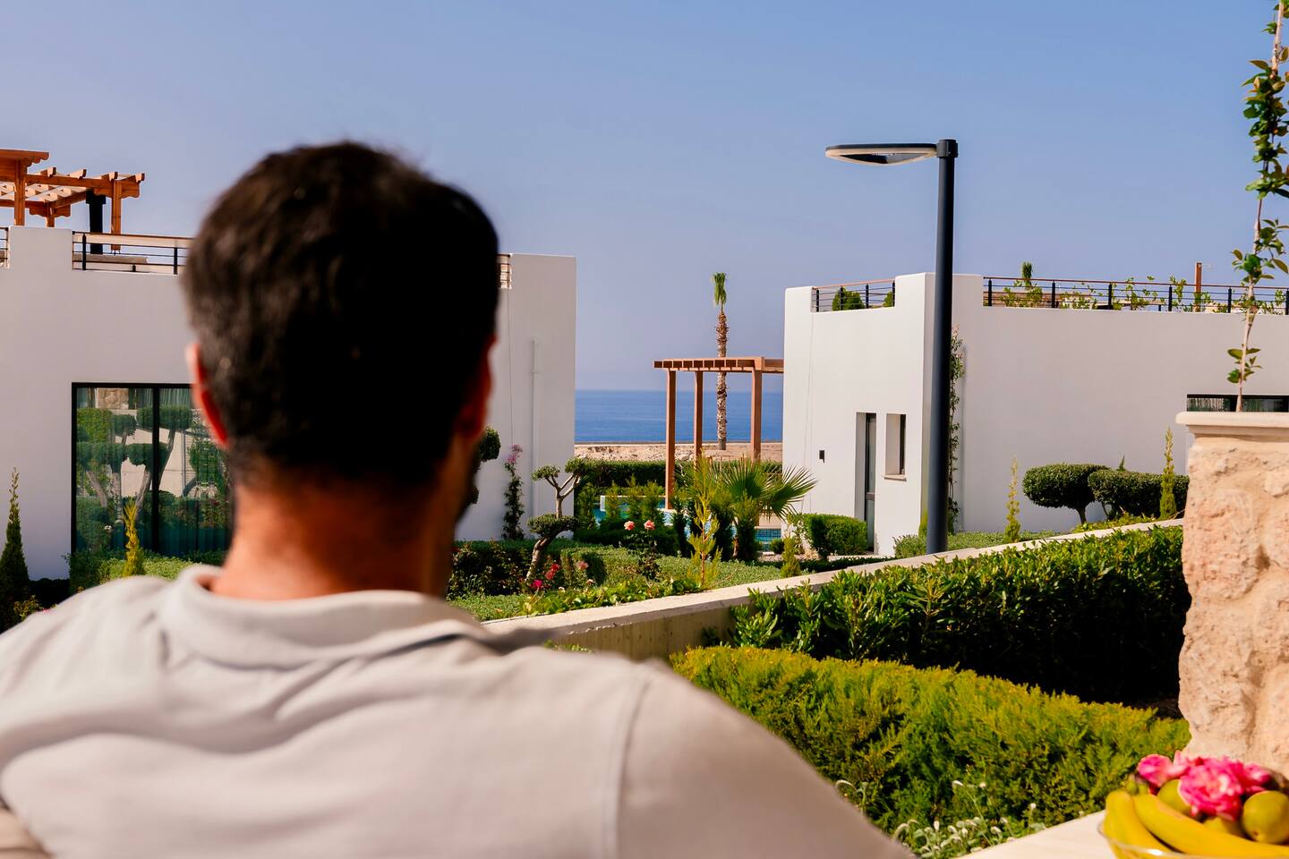 Die Anlage „Mykonos Homes“ liegt idyllisch zwischen Meer und Bergen und bietet dir den perfekten Rückzugsort zum Entspannen. Der private Strand ist nur wenige Schritte entfernt. Ein Supermarkt ist bequem zu Fuß erreichbar, ebenso wie ein sehr gutes Restaurant in der benachbarten Anlage „Maldives Homes“ – ideal für ein entspanntes Abendessen ohne Auto. Weitere Restaurants, Cafés und kleine Shops erreichst du schnell mit dem Auto. Für einen Ausflug lohnt sich die Hafenstadt Girne (Kyrenia) (ca. 31 km entfernt) mit ihrer Altstadt, der Promenade und vielen schönen Plätzen zum Entdecken.